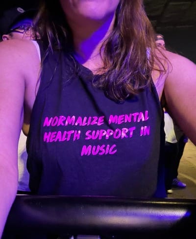 I realized, after going to the Unhinged lineup in August, that what she meant was they don't give a fuck about following any rules or expectations. This was great because they weren't afraid to break the flow and take my Normalize Mental Health Support in Music T shirt from me in the front row, and wear it on stage; thanks J Bannon. I was dodging crowd surfers and mindfully staying a few people deep from the pits that were breaking out all over the floor. I remember ducking boots and pushing away from swings thinking, I could never have foreseen this for my 40s. Thankfully, I got a crash course in mosh pit etiquette and what to especially watch out for, from Monica, who is quite experienced in the volcanoes of deep seeded rage and physical brutality on venue floors. Childhood trauma and an Aries moon will do it every time.